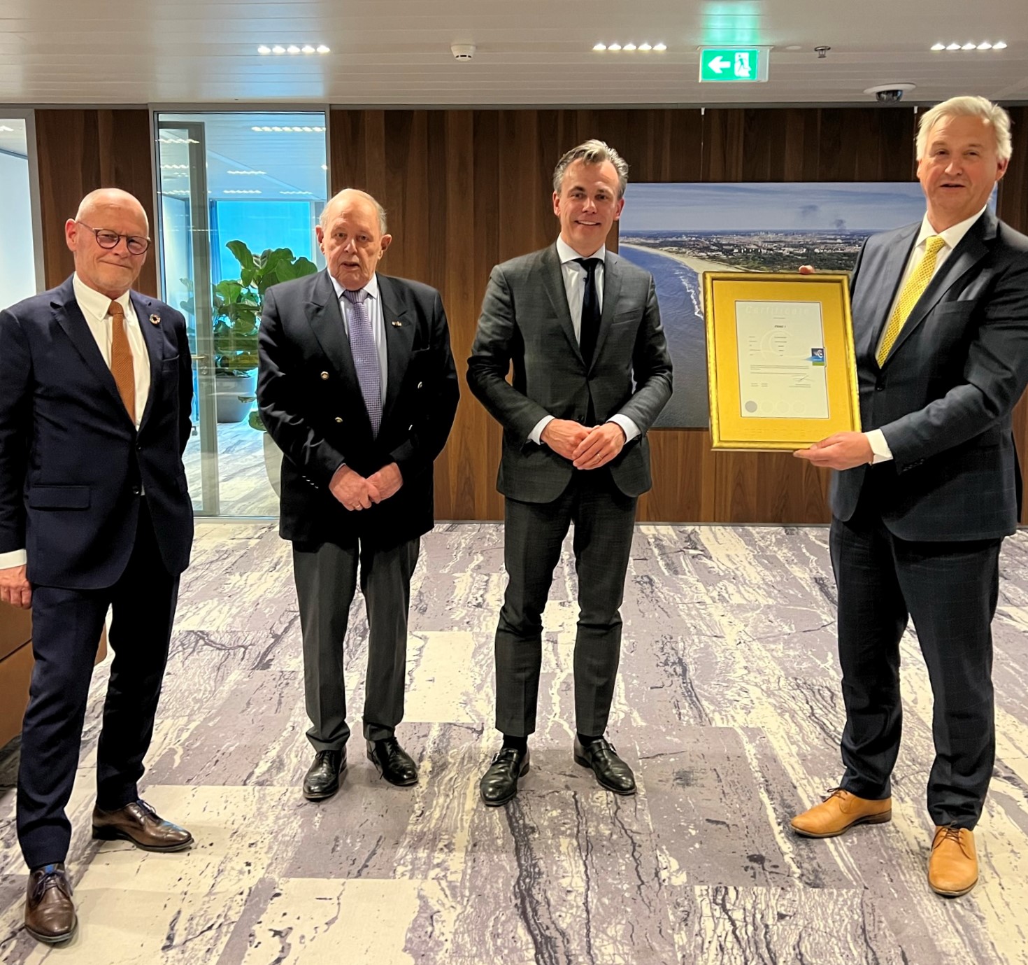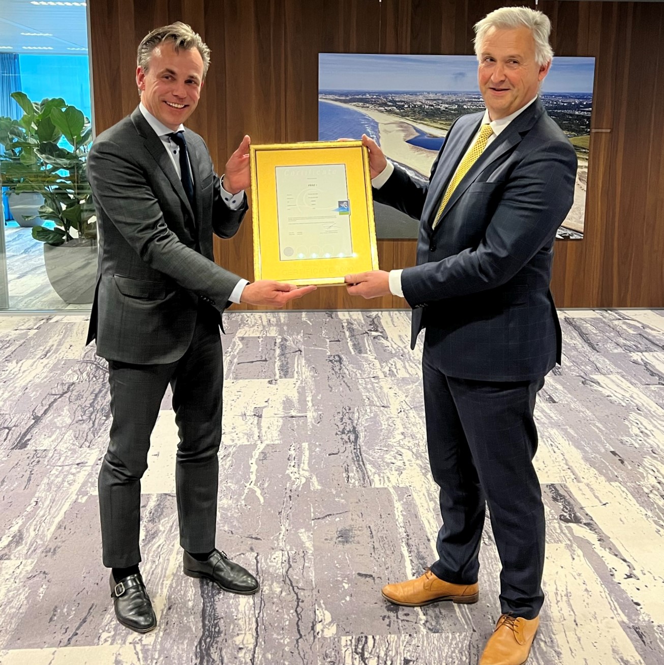 To underline the importance this milestone, Minister Mark Harbers of Infrastructure and Water Management was prepared to officially present the 1,000th certificate. Jan Huijbers, general manager of hydraulic engineering company Van den Herik Sliedrecht proudly accepted the certificate for his ms. Prince 1′ proudly received the certificate.