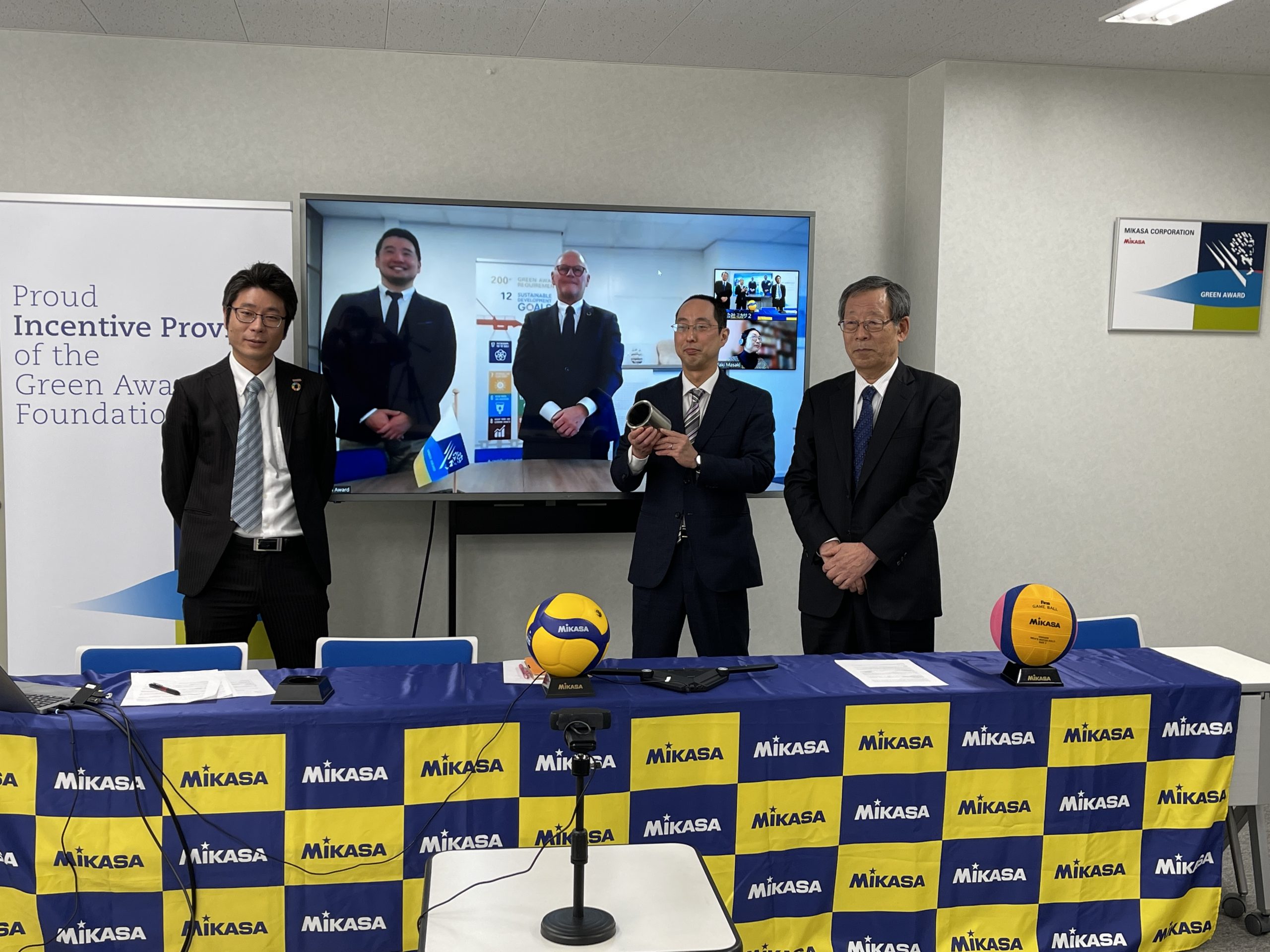 Representatives from Mikasa Corporation and Green Award Foundation (in-screen)
