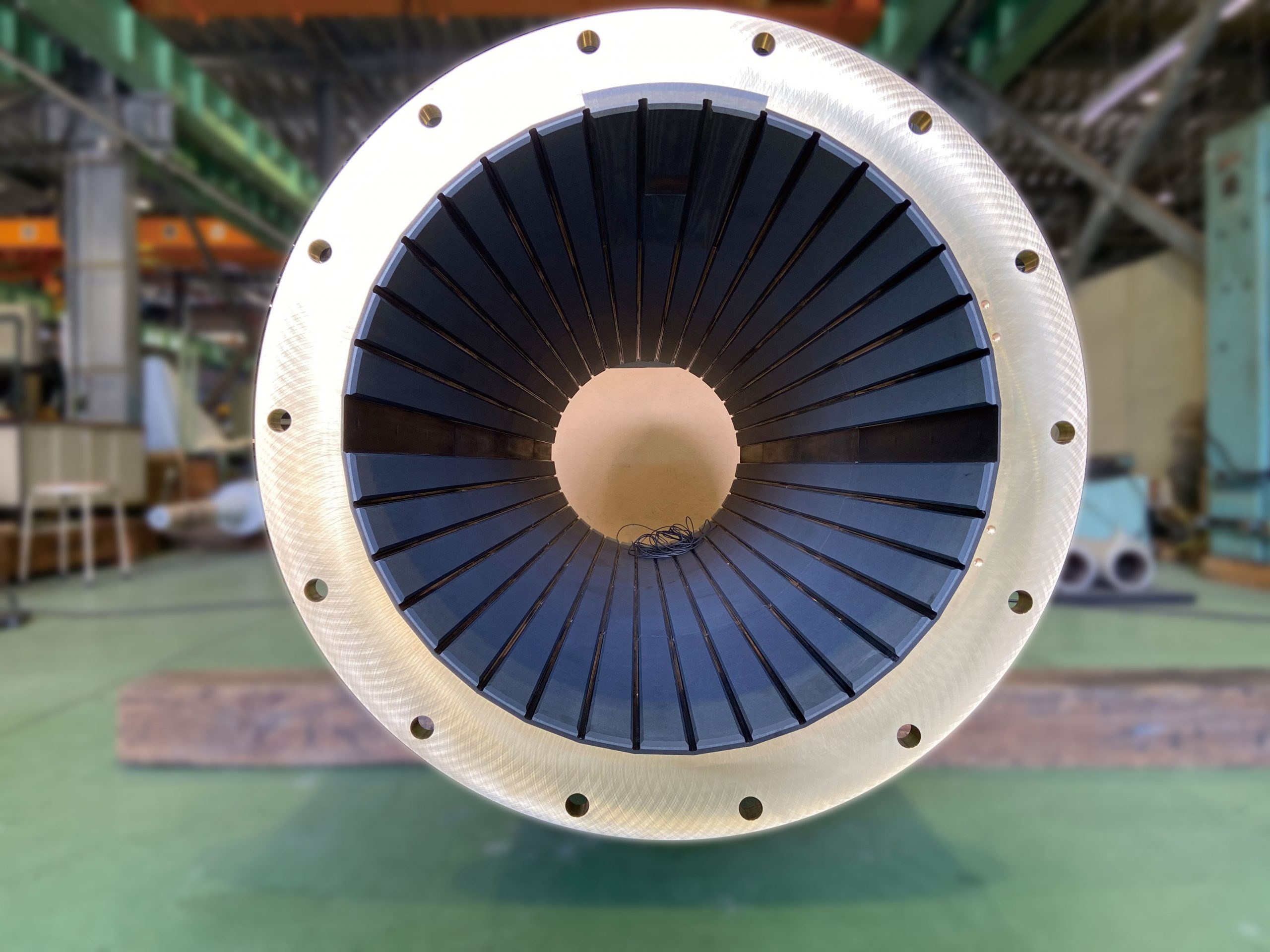 The FF-Bearing (Friction Free Bearing) manufactured and sold by Mikasa is based on a rubber bearing and has a self-lubricating polytetrafluoroethylene resin (PTFE) on its sliding surface, making it a product with ultra-low wear and a high durability. Because seawater is used as a lubricant, there is zero concern about oil leakage from the stern tube, and the friction resistance is about 1/8 that of rubber bearings, which contributes to fuel efficiency reduction in ship navigation.